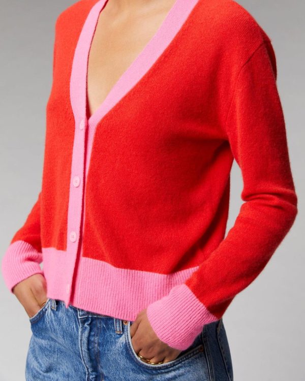 Confectionné en cachemire 2 fils, ce cardigan court et bicolore confère une allure avant-gardiste tout en douceur et légèreté. Muni d’un col en V, de manches longues et d’une fermeture boutonnée, ses bords contrastés viennent audacieusement structurer votre silhouette futuriste. À porter seul ou en superposition, mixez-le à un jean décontracté ou une jupe fluide.