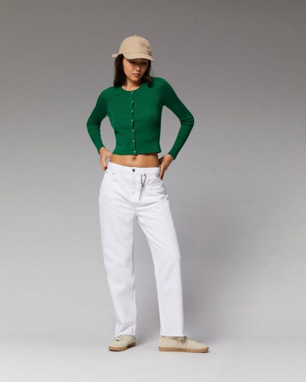 Confectionné en laine mérinos certifiée RWS (Responsible Wool Standard), ce pull cardigan court et ajusté se porte comme une seconde peau. Muni d’un col rond, de bords côtelés et de manches longues, il se pare d’une fermeture ponctuée de boutons bijoux, fusionnant élégance intemporelle et audace futuriste. Facile à mixer, associez-le à une robe fluide ou un pantalon structuré.