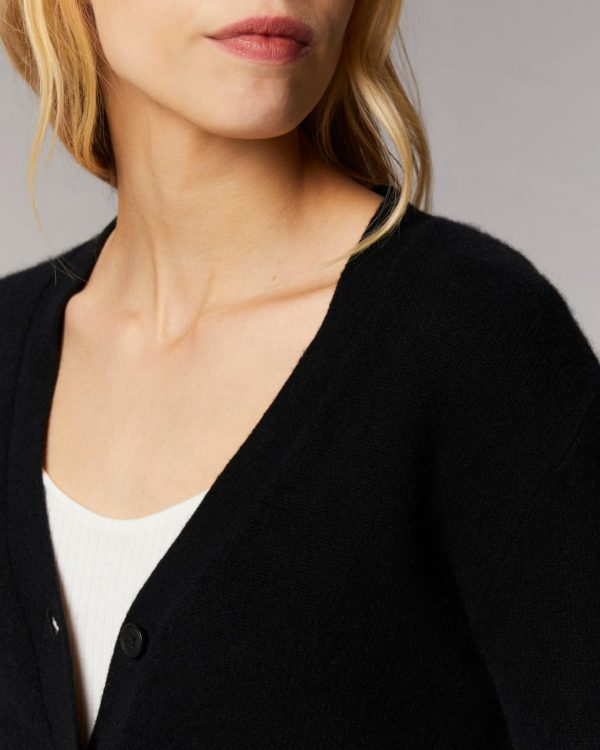 Une maille douce, chaude et légère pour cet intemporel cardigan court 100% cachemire. Indispensable de tous les vestiaires, il est muni d’un col V, de boutons et de manches longues.