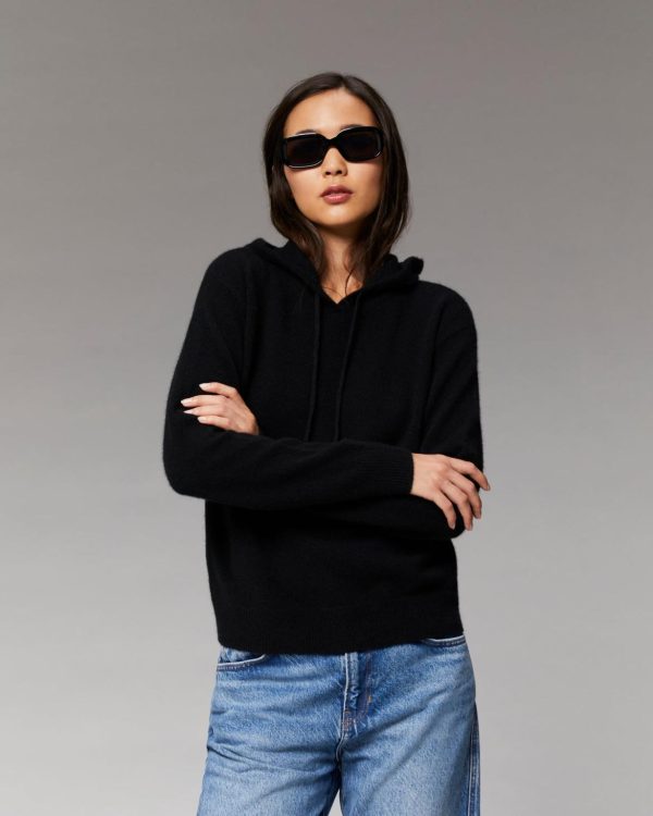 – Pull hoodie court en cachemire léger 2 fils Femme