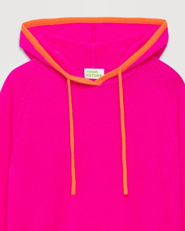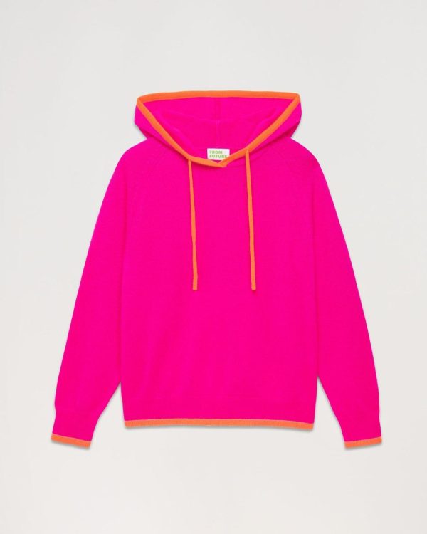 Une maille en cachemire infiniment douce pour ce hoodie oversize à manches longues qui révèle des bordures contrastées.