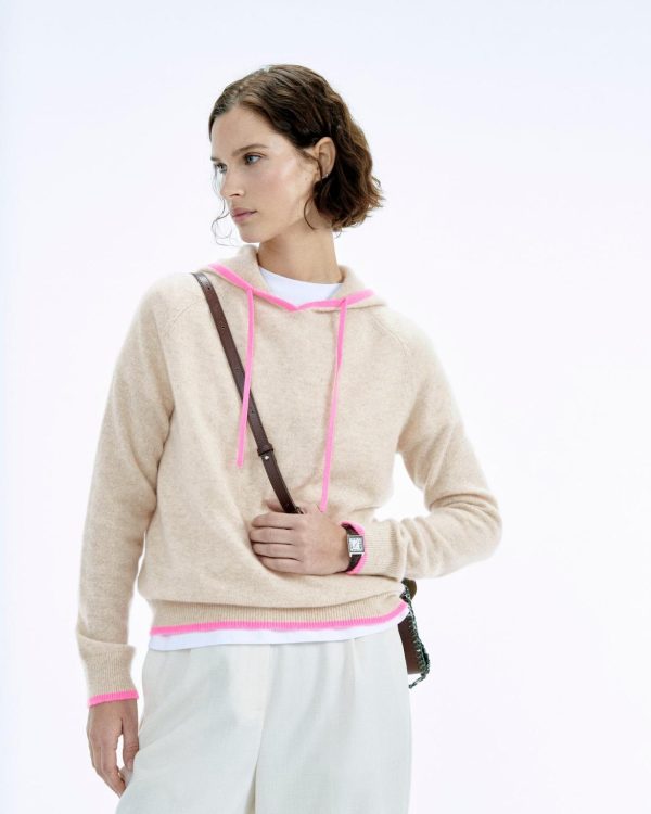 Femme Hoodies | FROM FUTURE Pull Hoodie Oversize Liserets Contrastes Beige Chine