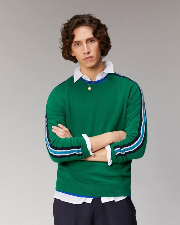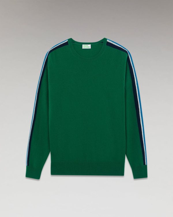 Confort et douceur pour ce pull en 100% cachemire muni d’un col rond et de bords côtelés. Ses bandes bicolores se révèlent le long des manches et confèrent une allure futuriste et moderne.