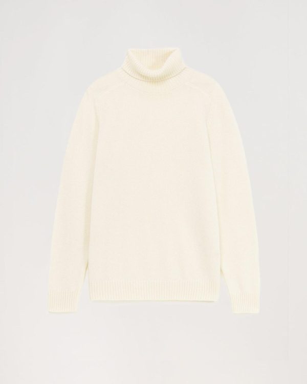 Col roulé en cachemire 4 fils. La maille parfaite en toutes saisons : aérée, légère, moelleuse. Parfaite surtout, sur ce pull col roulé à la coupe travaillée : manches marteau et bord côte pour ce je-ne-sais-quoi de classe. Parfaite on a dit.