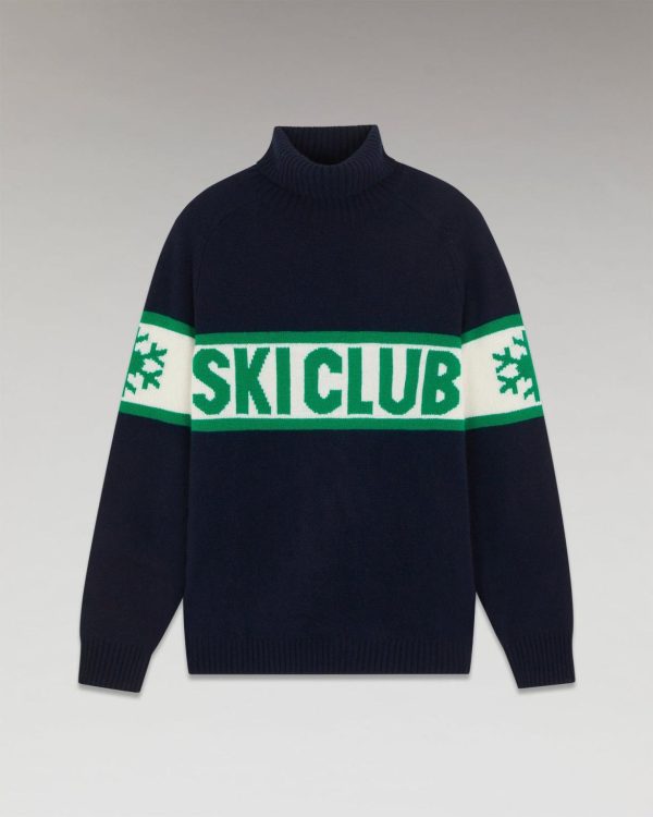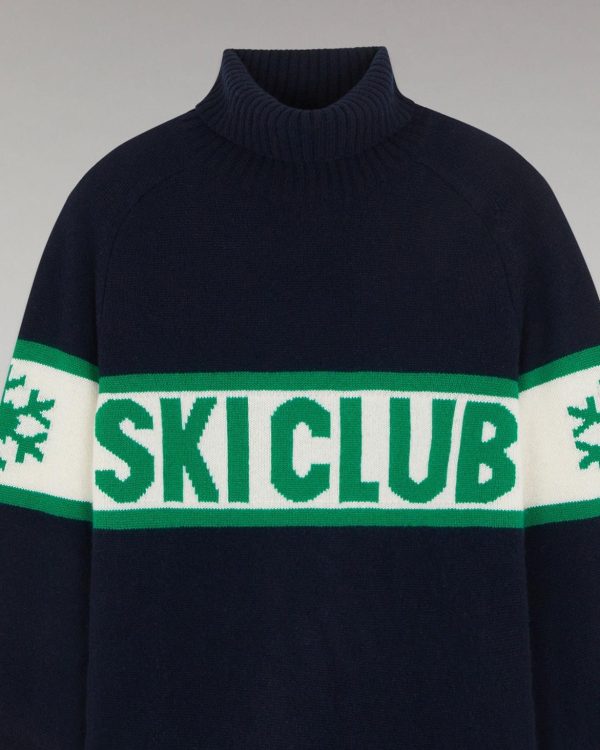Révélez votre allure cosmique sur les pistes enneigées ! Confectionné en cachemire 4 fils, ce pull oversize dévoile un col roulé, des manches longues et des bords côtelés. Infiniment doux, il révèle des bandes constrastées ornées d’un message « Ski Club » et de flocons de neige. Facile à mixer, complétez votre look avec un pantalon décontracté et un bonnet côtelé.