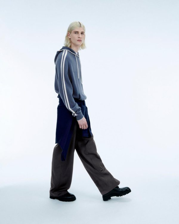 Coupe soignée et lignes futuristes pour ce pull hoodie confectionné en cachemire 2 fils. Muni d’une capuche à cordons et d’une poche avant, il joue avec les contrastes en dévoilant des bandes le long des manches. Infiniment doux, il se porte sans modération et s’associe aisément à un t-shirt et jean décontracté.