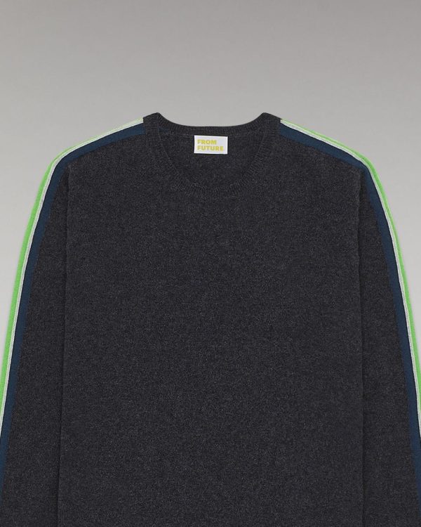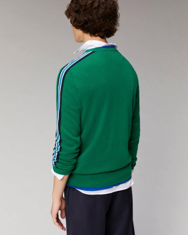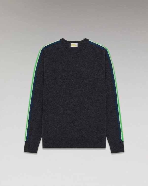 Confort et douceur pour ce pull en 100% cachemire muni d’un col rond et de bords côtelés. Ses bandes bicolores se révèlent le long des manches et confèrent une allure futuriste et moderne.